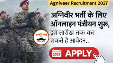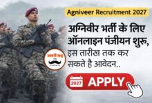 Agniveer Recruitment 2027 : अग्निवीर भर्ती के लिए ऑनलाइन पंजीयन शुरू, इस तारीख तक कर सकते हैं आवेदन,पढ़े पूरा समाचार…?