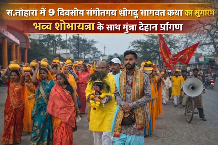 स. लोहारा में आज से 9 दिवसीय संगीतमय श्रीमद् भागवत कथा का शुभारंभ, भव्य शोभायात्रा के साथ गूंजा चांदनी चौक देहान प्रांगण