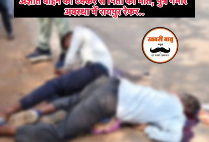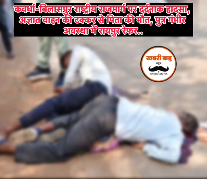 ACCIDENT NEWS – कवर्धा / बिलासपुर राष्ट्रीय राजमार्ग पर दर्दनाक हादसा, अज्ञात वाहन की टक्कर से पिता की मौत, पुत्र गंभीर अवस्था में रायपुर रेफर..