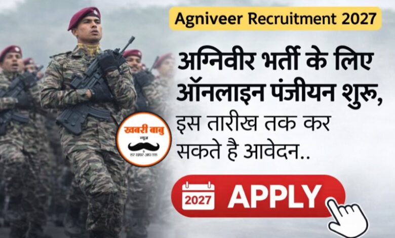 Agniveer Recruitment 2027 : अग्निवीर भर्ती के लिए ऑनलाइन पंजीयन शुरू, इस तारीख तक कर सकते हैं आवेदन,पढ़े पूरा समाचार…?