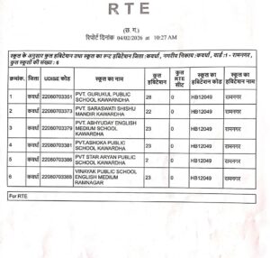 - गुरुकुल पब्लिक स्कूल, महाराजपुर पर आरोप है कि यह ग्रामीण क्षेत्र में संचालित होने के बावजूद आरटीई पोर्टल पर गलत हैबिटेशन कोड (एचबी 12049) दर्ज कर रामनगर कवर्धा के शहरी क्षेत्र से संबंधित दर्शाया गया।