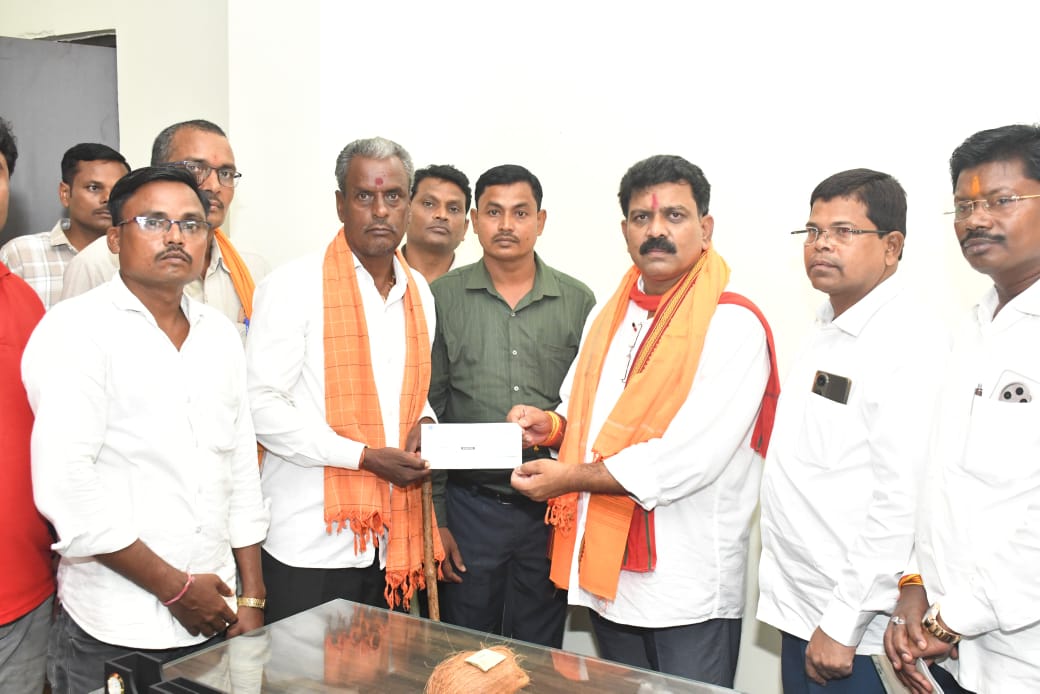 उपमुख्यमंत्री विजय शर्मा ने स्व. जलेश्वर साहू के पिता घासी साहू को 5 लाख रुपए की अनुदान राशि का चेक प्रदान किया
