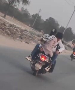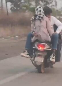 वायरल वीडियो में साफ देखा जा सकता है कि एक स्कूटी पर तीन युवक-युवती सवार हैं और तेज रफ्तार में बीच सड़क पर खतरनाक तरीके से चल रहे हैं। सबसे हैरान करने वाली बात यह है कि चलती स्कूटी पर एक कपल खुलेआम रोमांस करता नजर आ रहा है, जबकि तीसरा युवक वाहन चला रहा है। इस दौरान तीनों में से किसी ने भी हेलमेट नहीं पहना है और न ही किसी प्रकार के ट्रैफिक नियमों का पालन किया जा रहा है।