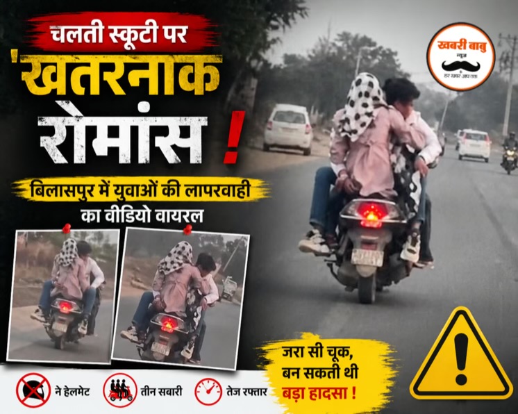 चलती स्कूटी पर ‘खतरनाक रोमांस’! बिलासपुर में युवाओं की लापरवाही का वीडियो वायरल, सड़क सुरक्षा पर उठे गंभीर सवाल…