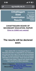 रिजल्ट देखने के लिए आधिकारिक वेबसाइट http://cgbse.nic.in पर लॉगिन करने वाले विद्यार्थियों को “Results Will Be Declared Soon” का संदेश दिखाई दे रहा है, जिससे उनमें असमंजस और चिंता की स्थिति बनी हुई है।