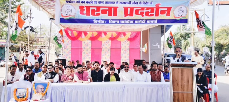 KABIRDHAM BREAKING – मनरेगा के नाम परिवर्तन के विरोध में जिला कांग्रेस कमेटी कबीरधाम का एक दिवसीय धरना