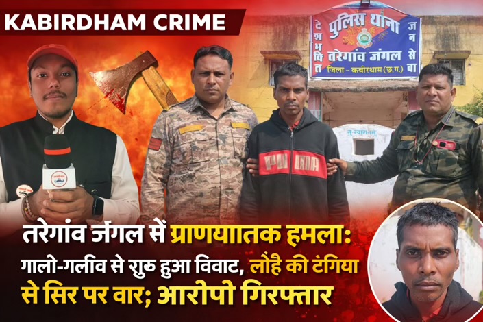 कबीरधाम, 23 जनवरी 2026। कबीरधाम जिले के थाना तरेगांव जंगल क्षेत्र अंतर्गत ग्राम ठाकुरटोला में मामूली विवाद ने गंभीर रूप ले लिया, जब गाली-गलौच को लेकर हुए वाद-विवाद के दौरान एक व्यक्ति पर लोहे की टंगिया से प्राणघातक हमला कर दिया गया। पुलिस की त्वरित कार्रवाई से आरोपी को गिरफ्तार कर घटना में प्रयुक्त हथियार भी जप्त कर लिया गया है।