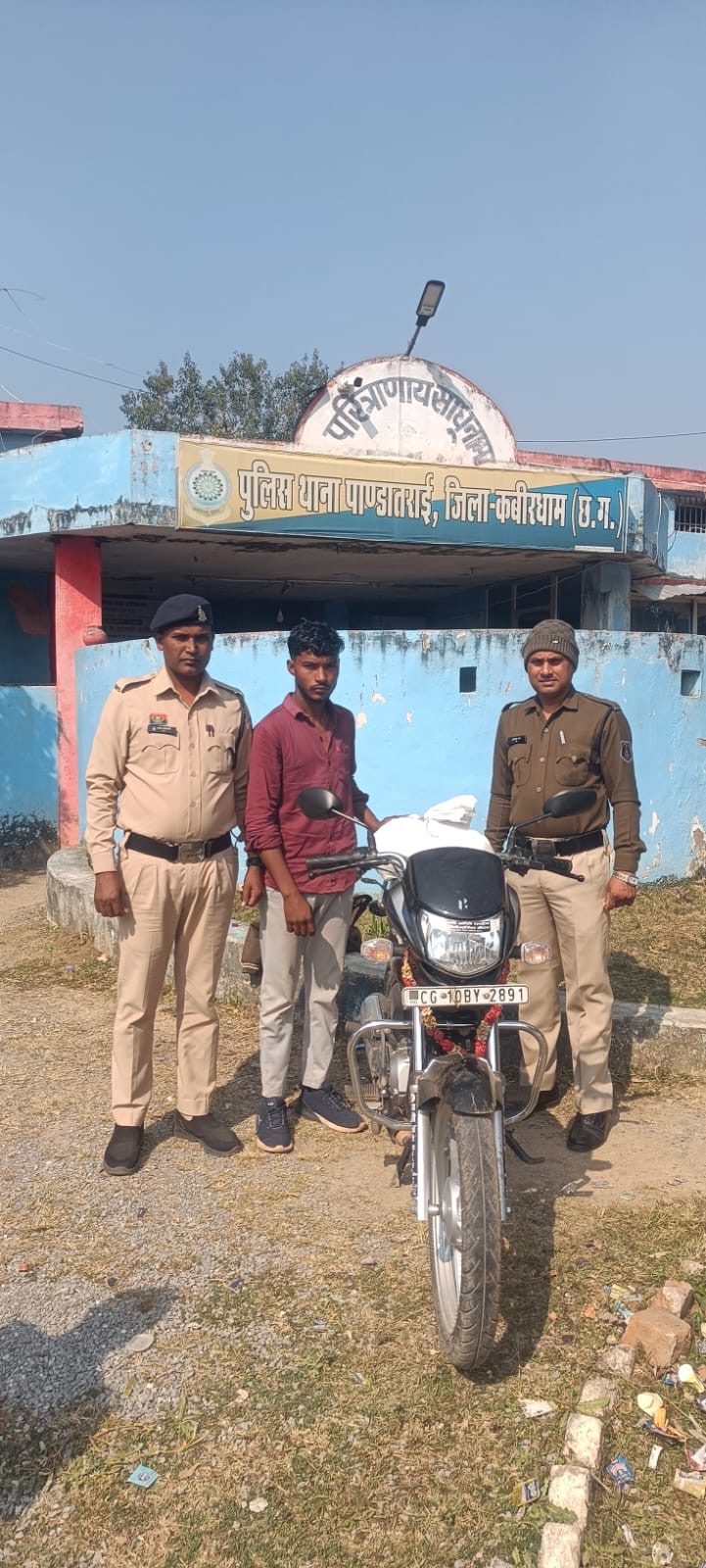कबीरधाम पुलिस द्वारा क्षेत्र में अवैध गतिविधियों पर अंकुश लगाने हेतु लगातार प्रभावी अभियान संचालित किया जा रहा है। इसी क्रम में थाना पांडातराई द्वारा आबकारी अधिनियम के तहत अवैध शराब बिक्री करने वाले एक आरोपी को पकड़ा गया तथा बड़ी मात्रा में देशी प्लेन शराब और घटना में प्रयुक्त मोटर सायकल को जप्त किया गया।