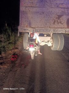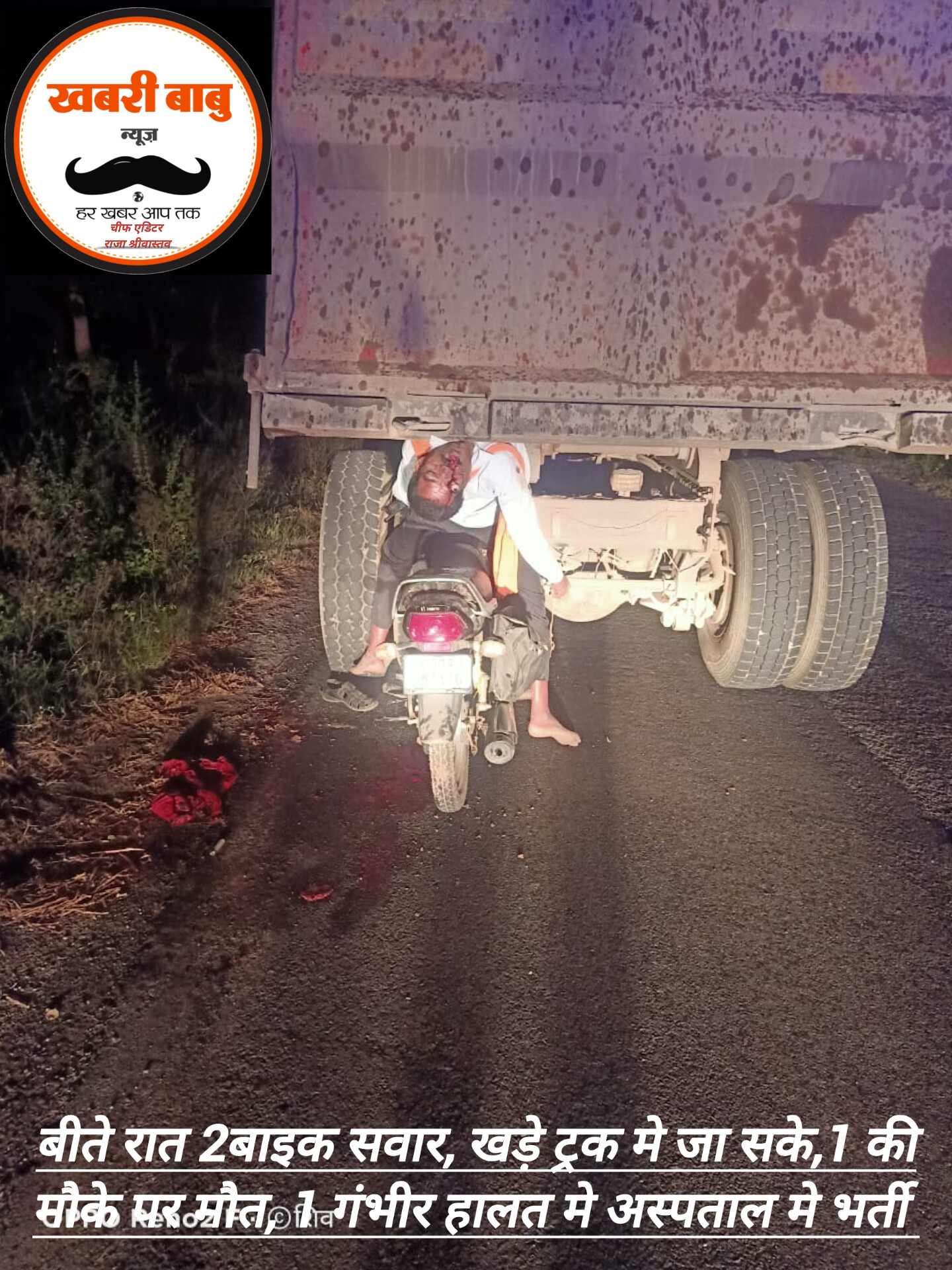 बीते रात 2 बाइक सवार, खड़े ट्रक मे जा घुसे, 1 की मोके पर मौत, 1 गंभीर हालत मे भर्ती