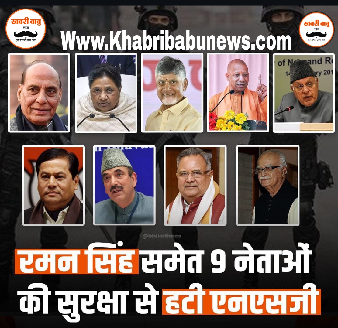 पूर्व सीएम और विधानसभा अध्यक्ष डॉ. रमन सिंह को प्राप्त एनएसजी सुरक्षा हटा ली जाएगी. अब उनकी सुरक्षा सीआरपीएफ के सुरक्षा विंग के जिम्मे होगी. केंद्रीय गृह विभाग ने रमन सिंह के साथ नौ अन्य नेताओं की एनएसजी सुरक्षा हटाने का फैसला किया है. इनमें राजनाथ सिंह, योगी आदित्य नाथ, चंद्रबाबू नायुडू, मायावती, सर्वानंद सोनोवाल, फारुख अब्दुल्ला, गुलाम नबी आजाद भी शामिल हैं |