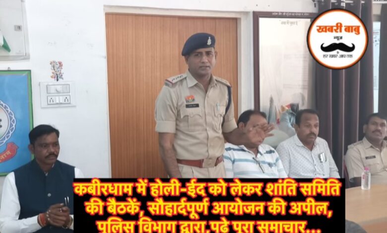 कबीरधाम में होली-ईद को लेकर शांति समिति की बैठकें, सौहार्दपूर्ण आयोजन की अपील,पुलिस विभाग द्वारा,पढ़े पूरा समाचार…