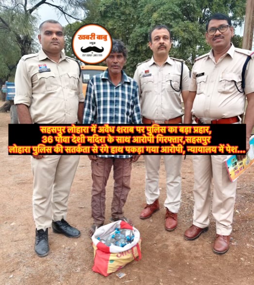 सहसपुर लोहारा में अवैध शराब पर पुलिस का बड़ा प्रहार, 36 पौवा देशी मदिरा के साथ आरोपी गिरफ्तार,सहसपुर लोहारा पुलिस की सतर्कता से रंगे हाथ पकड़ा गया आरोपी, न्यायालय में पेश…