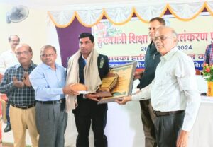 कवर्धा/सहसपुर लोहारा- मुख्यमंत्री शिक्षा गौरव अलंकरण पुरस्कार योजना अन्तर्गत 25 अक्टूबर 2024 को कार्यालय संयुक्त संचालक शिक्षा संभाग दुर्ग (मंथन कक्ष) में पी.एम.श्री स्वामी आत्मानंद शासकीय अंग्रेजी माध्यम विद्यालय सहसपुर लोहारा के प्राचार्य मनहरण लाल तुर्केले को उत्कृष्ट प्राचार्य पुरस्कार से सम्मानित किया गया। सम्मान समारोह के मुख्य अतिथि दुर्ग संभागायुक्त सत्यनारायण राठौर, विशिष्ट अतिथि सेवानिवृत्त उपसंचालक शिक्षा हरिशंकर वर्मा, सहायक संचालक सत्यनारायण स्वामी, के के शुक्ला, कौशल चतुर्वेदी ने उत्कृष्ट प्राचार्य पुरस्कार में शील्ड, प्रशस्ति पत्र, श्रीफल, साल, एवम् धन राशि देकर सम्मानित किया।