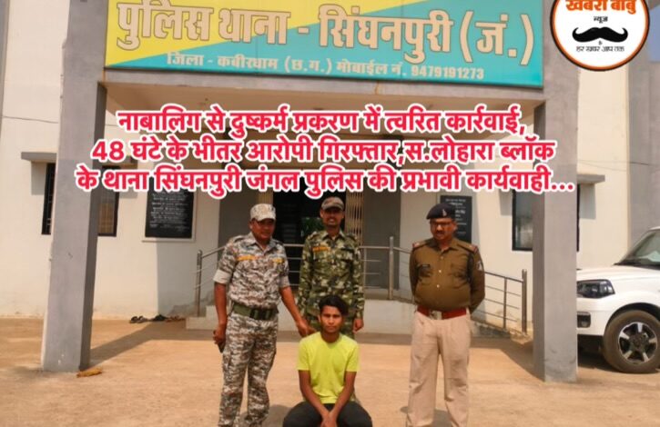 नाबालिग से गंभीर अपराध के प्रकरण में त्वरित कार्रवाई, 48 घंटे के भीतर आरोपी गिरफ्तार,स.लोहारा ब्लॉक के थाना सिंघनपुरी जंगल पुलिस की प्रभावी कार्यवाही…