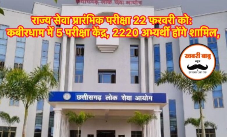राज्य सेवा प्रारंभिक परीक्षा 22 फरवरी को: कबीरधाम में 5 परीक्षा केंद्र, 2220 अभ्यर्थी होंगे शामिल परीक्षा से 2 घंटे पहले पहुंचना अनिवार्य, सख्त दिशा-निर्देश जारी,पढ़े पूरा समाचार…?