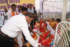 कलेक्टर सहित मुख्यअतिथियों ने दीप प्रज्जलित कर शिविर का विधिवत शुभांरभ किया। कलेक्टर श्री वर्मा ने जिला स्तरीय जनसमस्या निवारण शिविर में लगाए गए विभागीय स्टॉल तथा स्व सहायता केन्द्र का अवलोकन किया। उन्होने ग्रामीण जनों से संवाद कर आवश्यक जानकारी भी ली। शिविर में जिला अधिकारियों ने अपने विभाग द्वारा चलाए जा रहे योजनाओं की जानकारी दी। इस दौरान कलेक्टर श्री वर्मा सहित जनप्रतिनिधि गोदभराई में शामिल हुए और शिशुओं को अन्न प्राशन भी कराया। उन्होंने गर्भवती माताओं को कुपोषण कीट भी प्रदान किया। शिविर में स्वास्थ विभाग द्वारा ग्रामवासियों का निःशुल्क स्वास्थ्य परीक्षण भी किया गया।